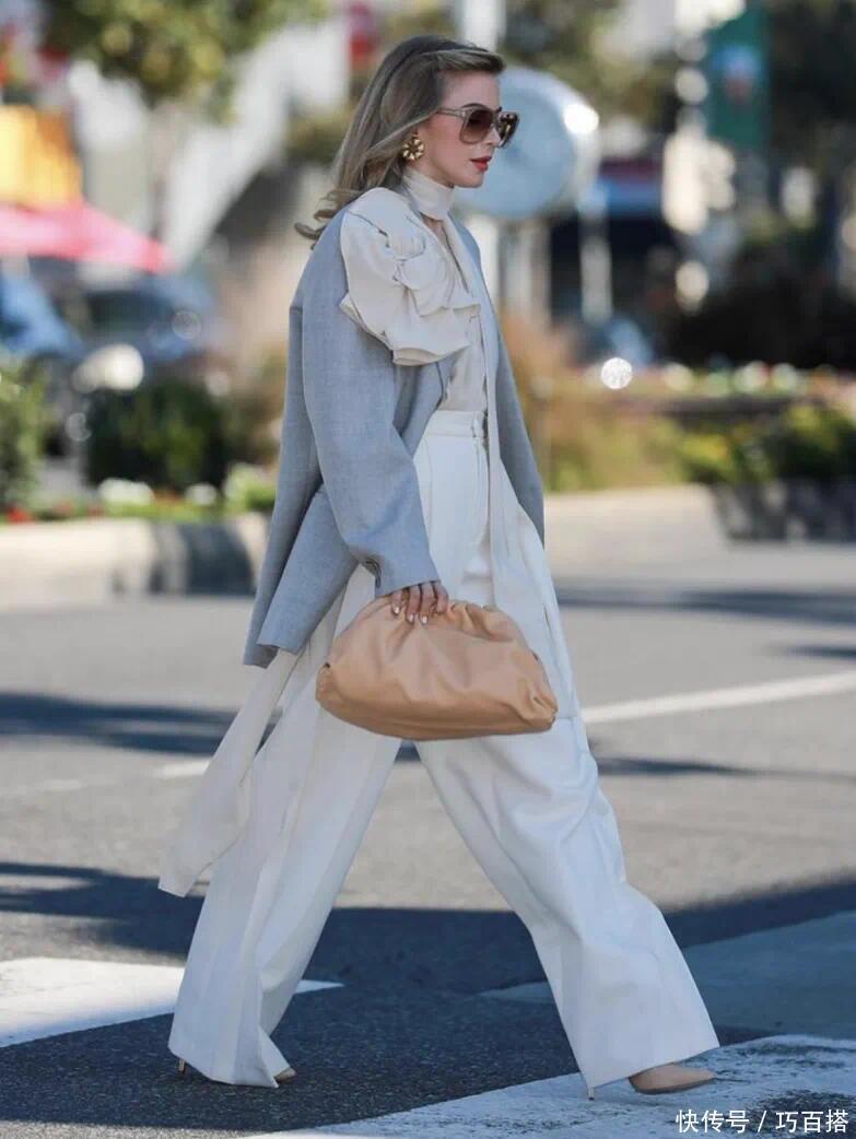 除此之外,大家还可以根据面料挑选白色长裤,春夏天选择雪纺、亚麻或者冰丝材质的效果最佳,用西装和牛仔材质进行季节过渡,秋冬天选择毛呢、雪尼尔材质的白色长裤,效果也很nice。