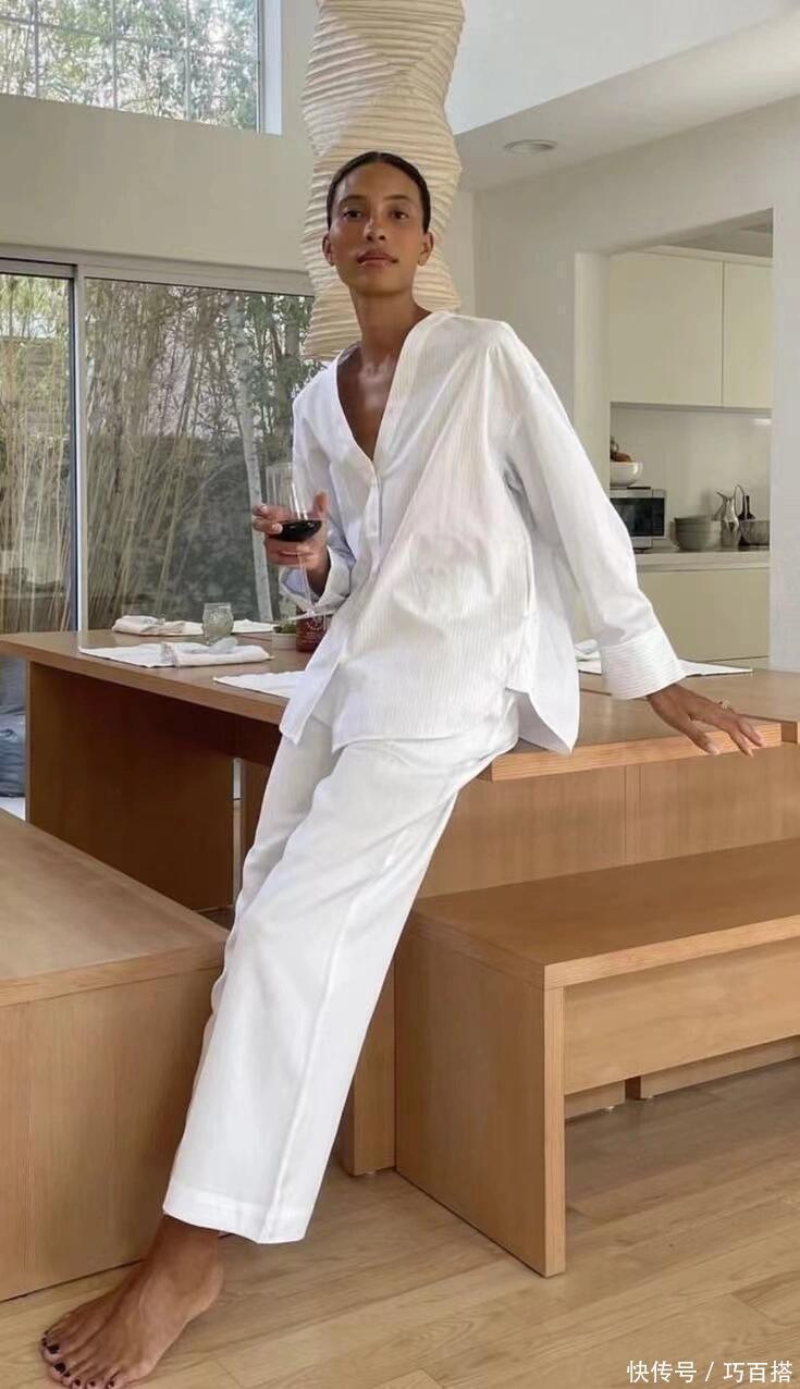 大家可以像博主一样选择“白开水穿法”,白色上衣+白色长裤的组合模式,简洁利落,清亮明媚有存在感。